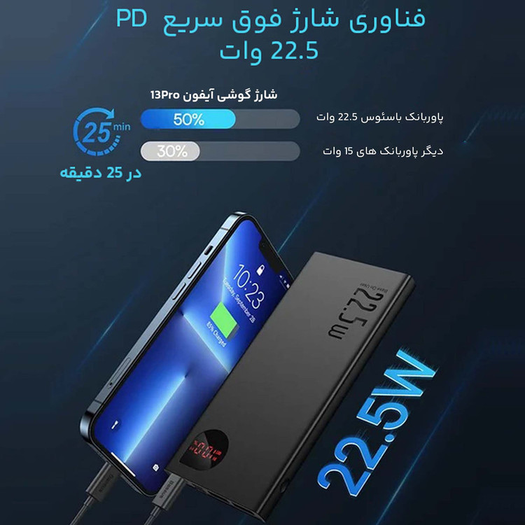 پاوربانک باسئوس مدل PPAD000001 ظرفیت 10000 میلی آمپر ساعت