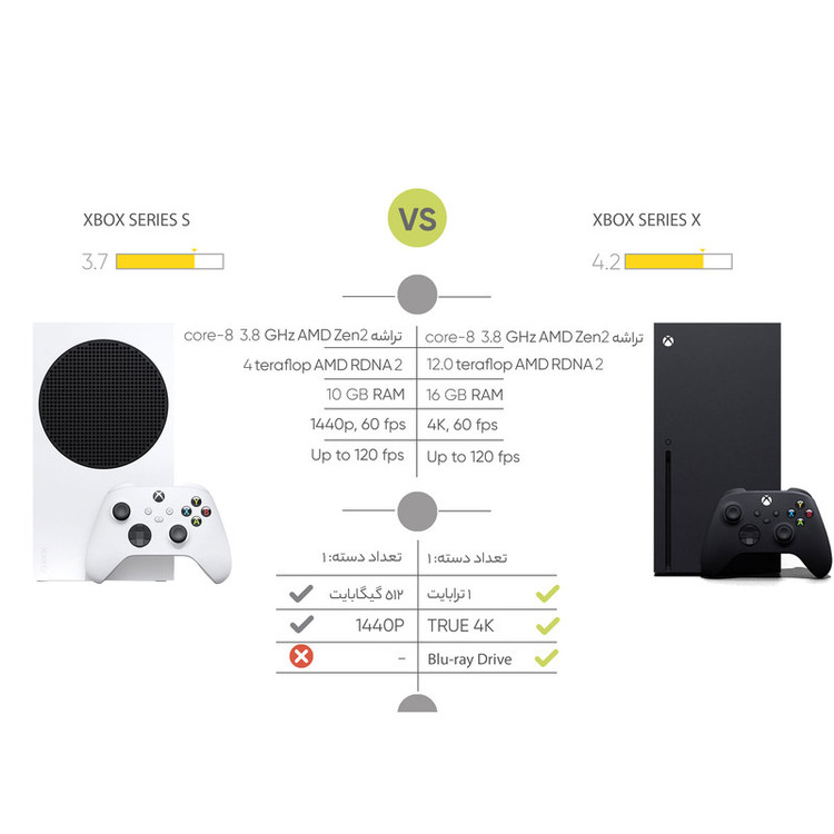 کسانی که کمترین آشنایی را با دنیای بازیهای ویدیویی دارند قطعا کنسول XBOX را حتی تا حد کمی میشناسند. این کنسول بازی دارای محبوبیت و طرفدار بسیار زیادی است و شرکت مایکروسافت آن را بع بازار داده است و پشتیبانی میکند. کنسول بازی مایکروسافت مدل XBOX SERIES S ظرفیت 512گیگابایت جدیدترین و پرقدرتترین و با کیفیتترین کنسول ارائه شده این شرکت ابربزرگ است. حافظه رم 10GB GDDR6 128 bit-wide bus در این کنسول اجرای بازیها را بسیار باکیفیتتر و سریعتر می کند و میتوانید لذتی در رزولوشن 1440p با 120fps را تجربه کنید که هر بازیکنندهای در انتظار آن است. خنک کننده این کنسول شرکت مایکروسافت مشابه نسل قبلی خود کار میکند و هوای گرم را توسط فن خنککننده خود از بالای کنسول خارج میکنند و این امر بهدلیل معماری سبکتر بودن هوای گرم نسبت به هوای سرد است که سرعت خنک کنندگی را بیشازپیش میکند. سیستم صوتی این سیستم هم میتواند شما را تحتتاثیر گذارد و بیشتر در فضای بازی غرق شوید. SERIES S از سیستمهای صوتی L-PCM up to 7.1 3.6 GHz و Dolby Digital 5.1 استفاده میکند.