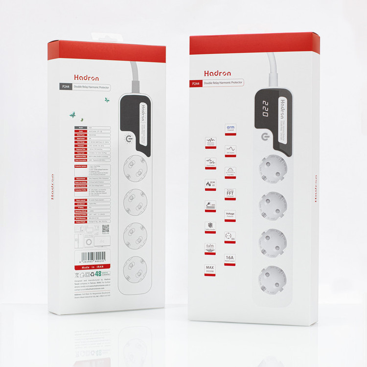 چندراهی برق و محافظ هارمونیک هادرون با طراحی مدرن و امکانات پیشرفته، انتخابی ایدهآل برای ساماندهی, حفاظت و بهبود سیستم برقرسانی منزل و محل کار شما می باشد. قطع برق با دو رله، قابلیت وصل در نقطه صفر و حفاظت در برابر هارمونیک های مخرب برق، ویژگی منحصر به فرد این محصول نسبت به سایر محصولات موجود در بازار است. استفاده از این محصول به دلیل برخورداری از کابل مسی ضخیم، پلیمر مهندسی شده ضد شعله، پردازنده قدرتمند ۳۲ بیتی و قابلیت انتخاب پروفایل محافظتی، حداکثر حفاظت از لوازم برقیِ خانگی و اداری شما را تضمین می نماید.