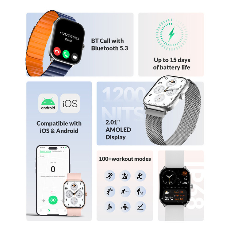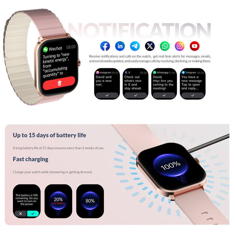 ساعت هوشمند 46 میلی متری گلوریمی مدل glorimi GC Plus با بند سلیکیونی و مغناطیسی