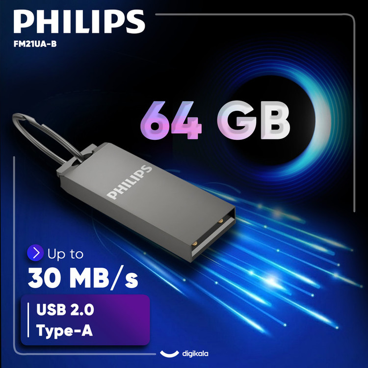 فلش مموری فیلیپسPHILIPS مدل FM21UA-B ظرفیت 64 گیگابایت با رابط USB 2.0