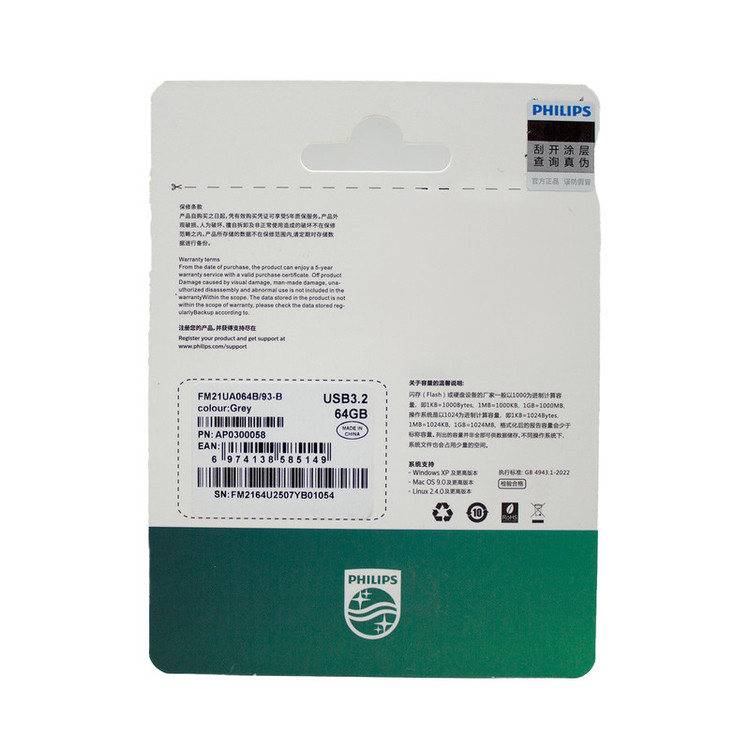 فلش مموری فیلیپسPHILIPS مدل FM21UA-B 3.2 ظرفیت 64 گیگابایت با رابط USB 3.2