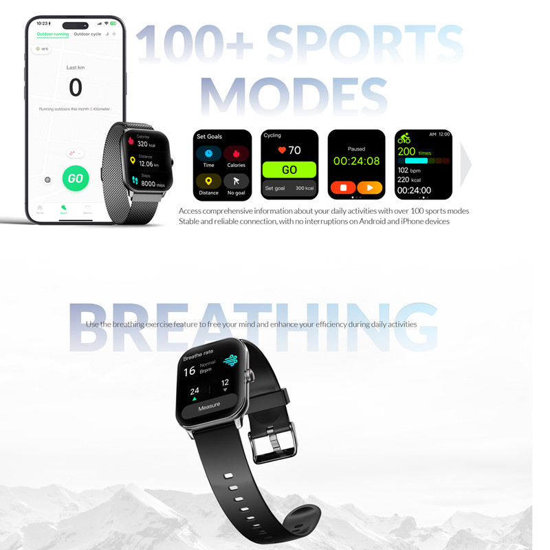 قابلیتهای ساعت هوشمند : قابلیت مکالمه از طریق بلوتوث , کنترل موسیقی (Music Player) , پشتیبانی از زبان فارسی در منو و سیستمعامل , قابلیت تغییر طرح ساعت یا تم , صفحه همیشه روشن (Always-on Display)